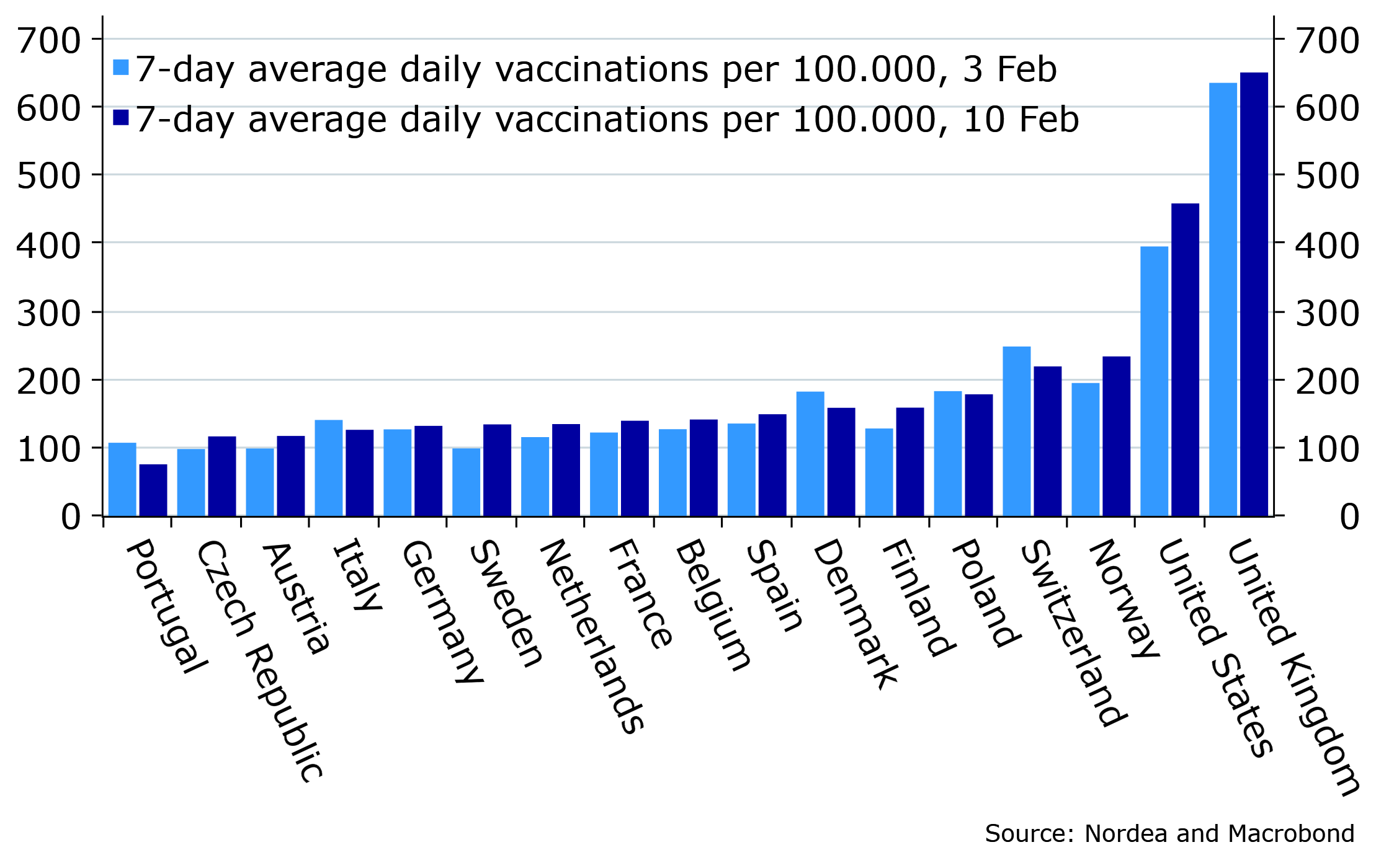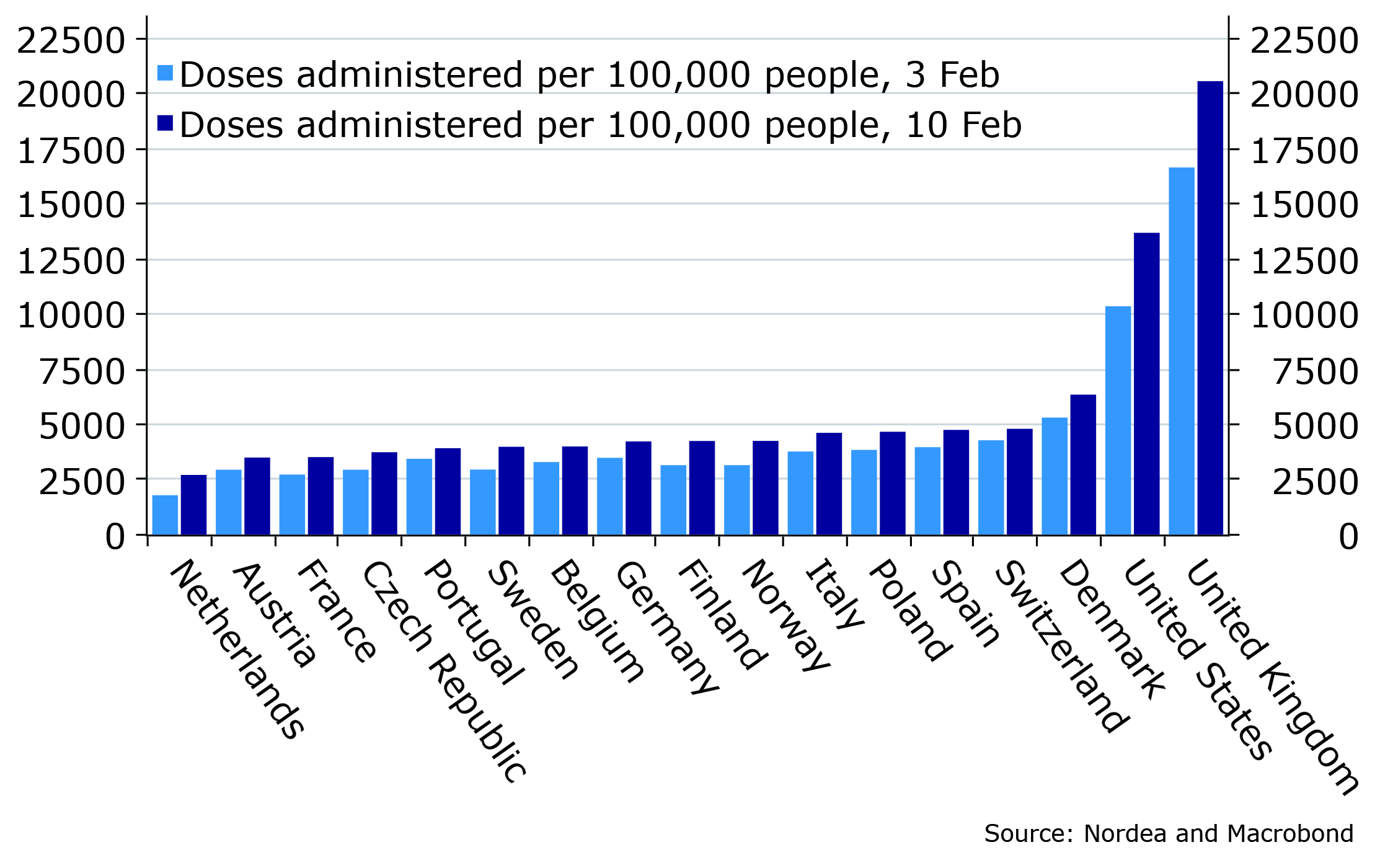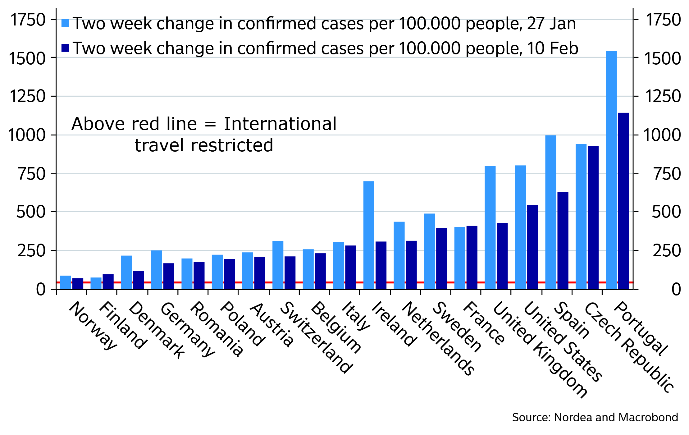 The important features of the plan will allow regions of Germany to largely reopen if the incidence rate falls below 35 on a 1w rolling basis from the 7th of March. Applying these rules to the Nordics would lead to larger reopening of the economy.