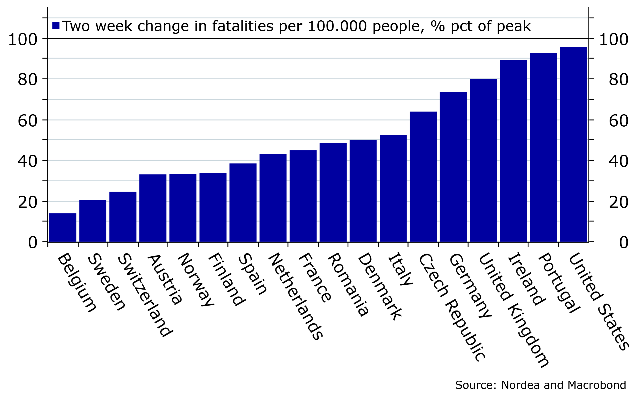 Chart 8. Change in fatalities per 100.000 people over the past 2 weeks as % of peak of the pandemic