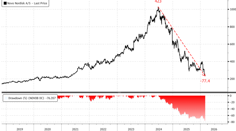 Shares of Novo caught a bid in Copenhagen, rising about 5%, but the key question is: who is stepping in to catch this falling knife?