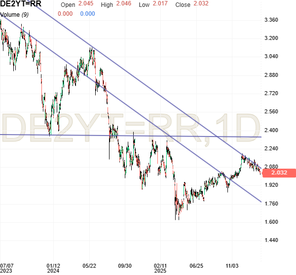Kursgraf: Moderat økonomisk vækst og svaghed på de finansielle markeder presser renterne, da kapitalen søger mod sikre statsobligationer