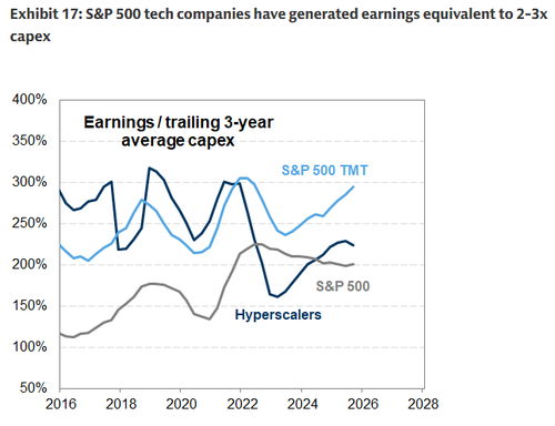 Hvilket igen bringer os til den centrale, bindende begrænsning: afkastet af investeringen i AI, eller som Goldmans Shreeti Kapa udtrykker det, ” det større spørgsmål er størrelsen og formen af ​​profitpuljerne, der følger af investeringer i denne nye teknologi.