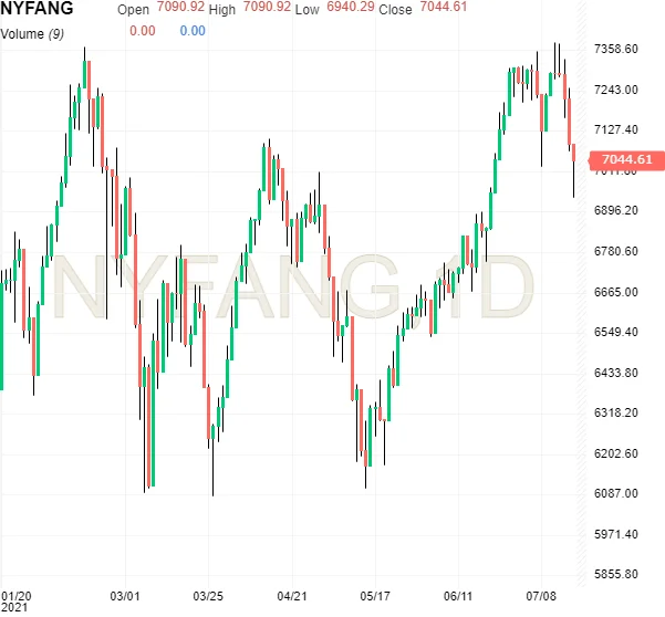 Kursgraf: FANG aktierne dykkede kun knap én procent mandag, langt mindre end det generelle aktiemarked.