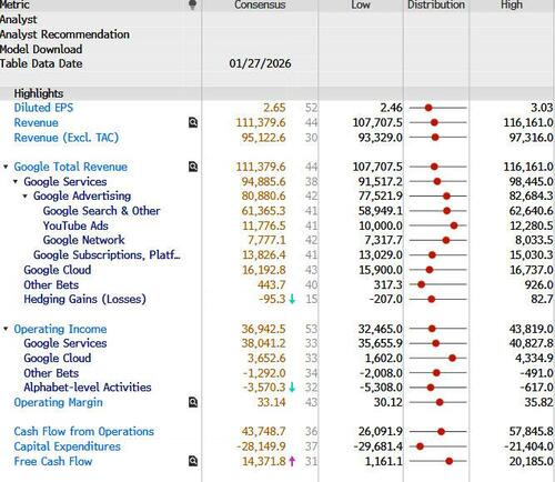 GOOG 25Q4 EARNINGS PREVIEW – The Funding Long: “Owning GOOG the past few months has felt like snuggling up inside a warm blanket: cozy and safe. But I worry that we’re veering, short-term, into ‘lazy long’ territory. Buyside estimates for 2027 EPS are not significantly above the Street, so it feels like investors are playing more for continued multiple expansion rather than material earnings beats.” As Schilsky concludes, “That set-up bugs me given that GOOG is now more expensive than MSFT, AMZN and META on 2026 GAAP P/E.” Yes, GOOGL is going from strength to strength as Gemini continues to take market share from ChatGPT and we still have some major AI-related deals coming online this year (Anthropic TPUs, AAPL Siri, etc.) but the stock just feels a bit too loved to in the short-term to warrant massive overweight/long positions headed into the Q4 print.