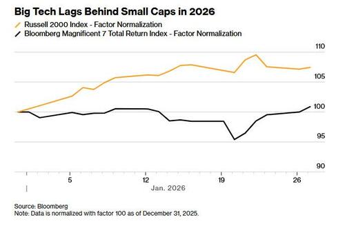 While big tech is rebounding ahead of earnings, so far this year, the high-profile cohort of megacaps is lagging behind small firms