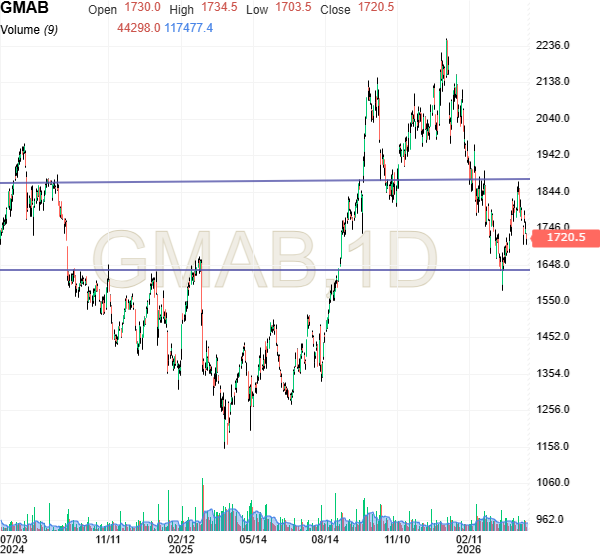 Kursgraf: Genmab har historisk haft et vigtigt pejlemærke omkring 1650
