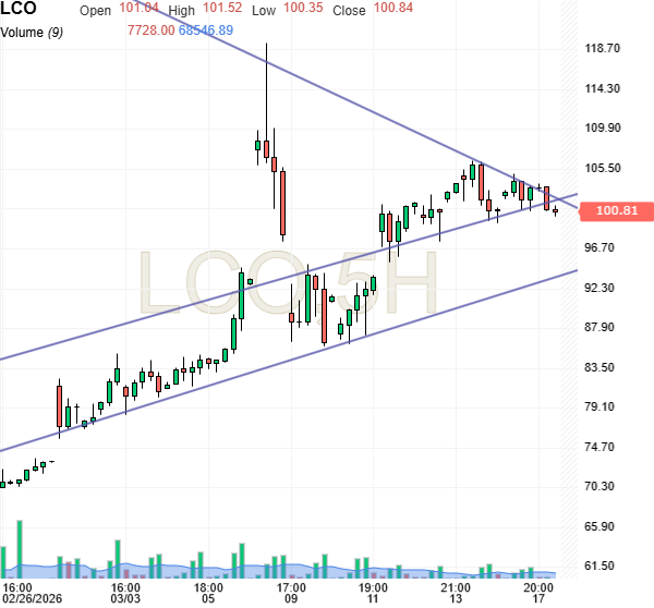 Kursgraf: Selektive transporter gennem Hormuz stræde og mulig udsigt til en global økonomisk opbremsning presser oliepriser
