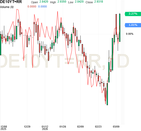 Kursgraf: Den 10-årige danske statsrene er rød linje, som tydeligvis er steget markant på det seneste