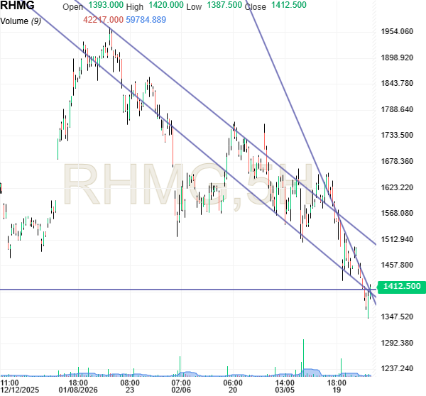 Kursgraf: VI har Rheinmetall i ØUs Forsigtige Portefølje, aktuelt med et mindre kurstab.