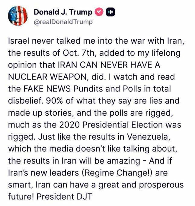 This firm stance is after President dramatically shifted his tone over the weekend from strangely and surprisingly somewhat praising Iran’s leadership (with statements such as the US could work with them and possibly trust them) to once up again ramping up threats, posting “No more Mr. Nice Guy” on social media.