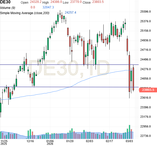 Kursgraf: Det toneangivende tyske DAX indeks er nu faldet under det vigtige lange 200 dages glidende gennemsnit.