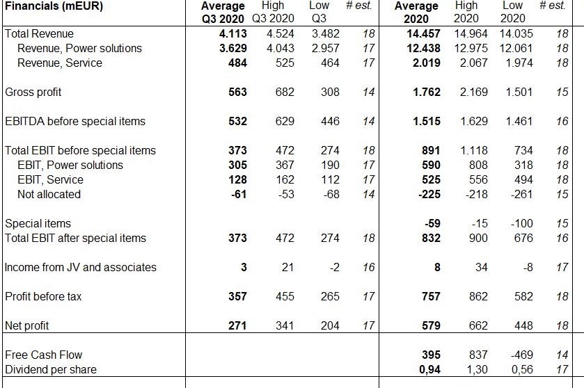 Kommentar: Analytikerne forventer et “profit” på 271 mio. kr. i Q3-20. I Q3-19 havde Vestas en profit på 303 mio. kr.