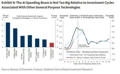 …and the AI spending boom does not look particularly large when appropriately benchmarked against investment cycles associated with other general-purpose technologies.