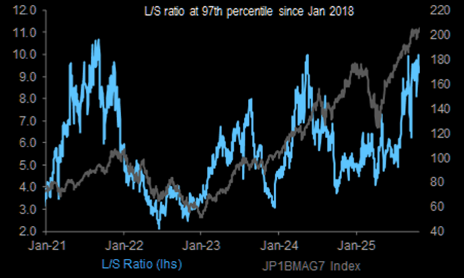 | Hedge funds love Mag7 | | Hedge funds are very bullish Mag7 stocks. | JPM PI |