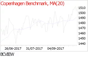 Copenhagen Benchmark (CB) har ligget i intervallet 1460-1500 siden midten af juli. Altså i snart to måneder. Men nu ser det ud til, at den sidelæns bevægelse nærmer sig slutningen.