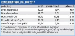 Men når det er sagt, kan der i allerhøjeste grad stilles spørgsmålstegn ved rimeligheden af Brdr. Hartmanns dramatiske kursfald i onsdags. Det blev da også demonstreret allerede dagen efter, hvor kursen steg 7 procent i løbet af torsdag formiddag. Hvis vi ser på værdiansættelsen af Brdr. Hartmann, handles aktien nu til en forventet Price/Earning på 12,6 i 2017, hvor der budgetteres med en stigning i EBIT på 6-7 procent. Det er ikke alarmerende, og hvis selskabet får ret i, at der blot er tale om en kortvarig udskydelse af vækstplanerne, kan aktien begynde at stige igen i anden halvdel af året. Men på kort sigt er det vanskeligt at se Brdr. Hartmann vende tilbage til kurs 353, som aktien lå i før onsdagens årsregnskab blev offentliggjort.