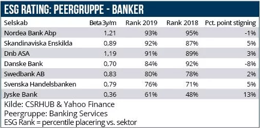 Det er især governanceaspektet i ESG-vurderinger, der for de større banker er interessant at følge med i. Branchen lider generelt under en tillidskrise, der satte sine dybe rødder tilbage i Finanskrisetiden. Siden har store hvidvaskskandaler og andet kradset hul på såret.