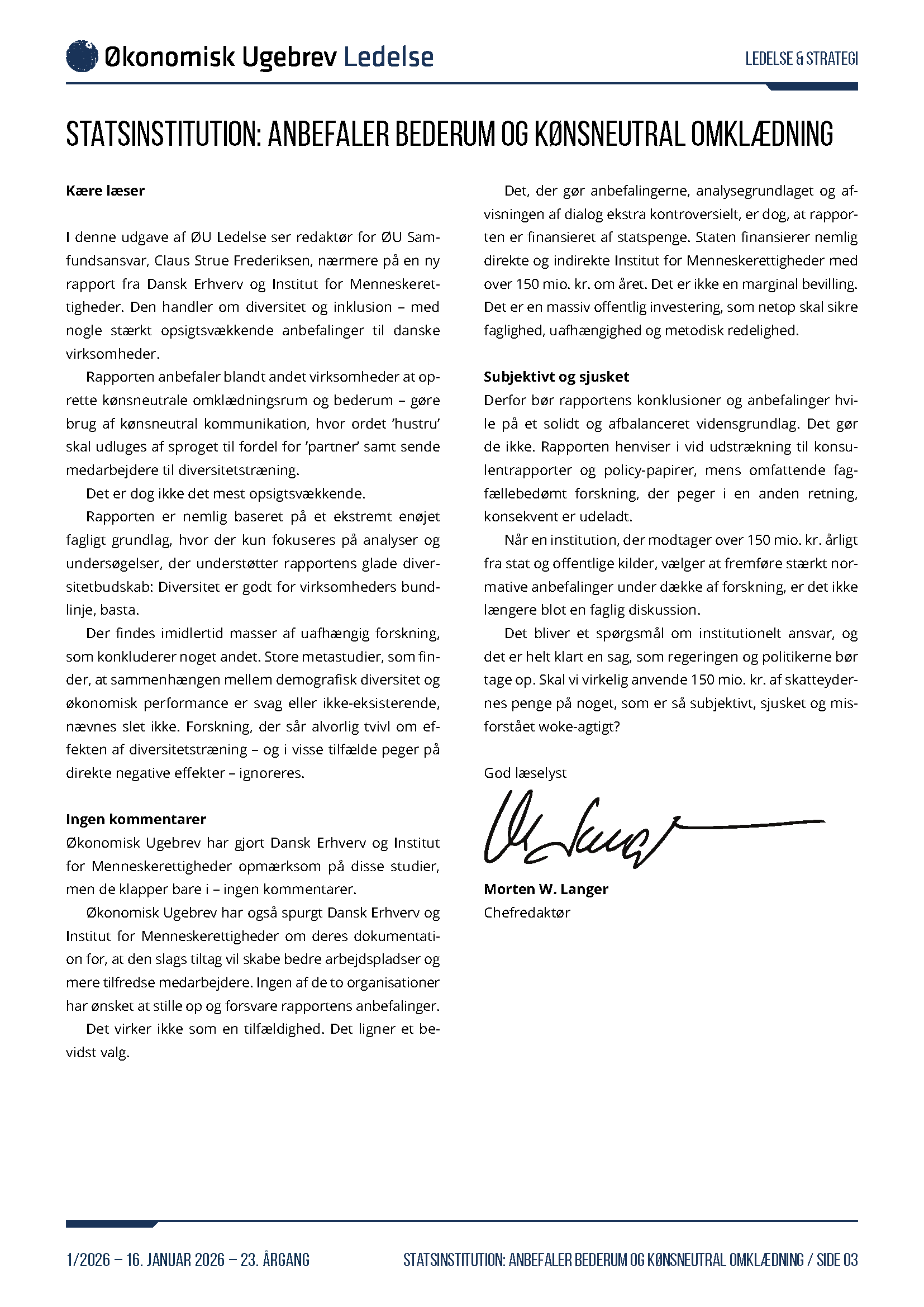 - Statsinstitution: Anbefaler bederum og kønsneutral omklædning