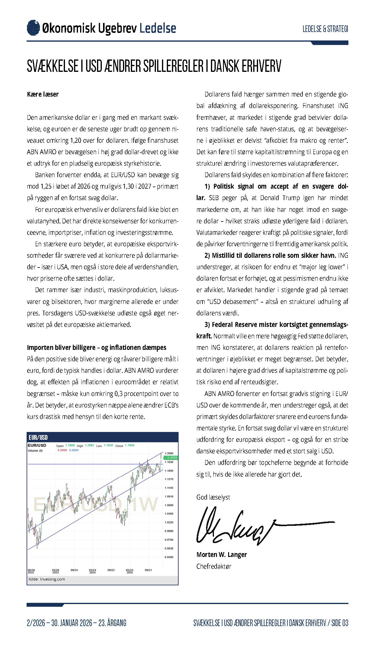 - Svækkelse i USD ændrer spilleregler i dansk erhverv