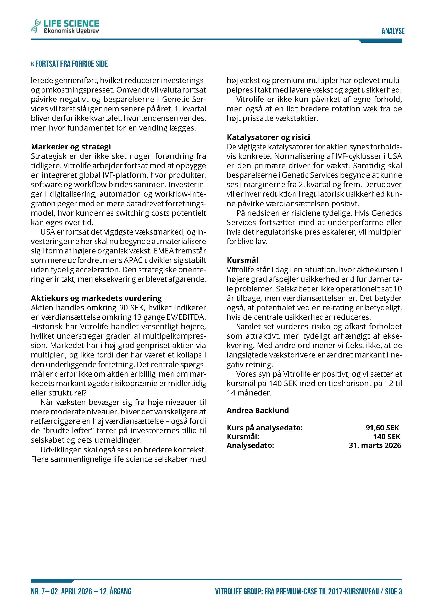 - Vitrolife group: Fra premium-case til 2017-kursniveau