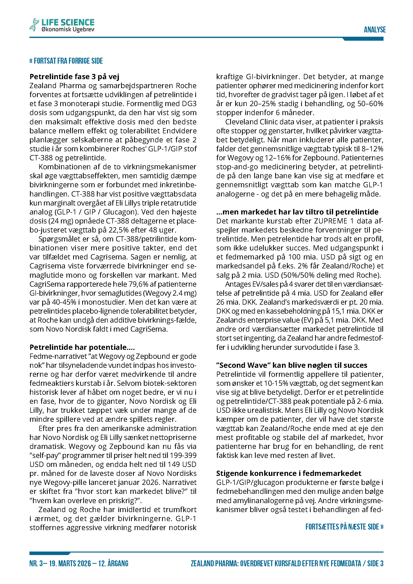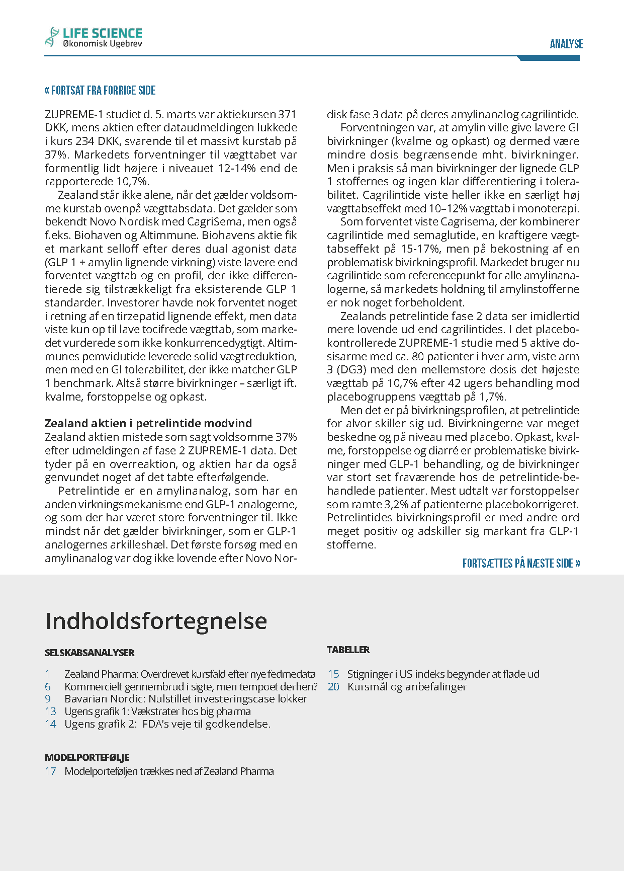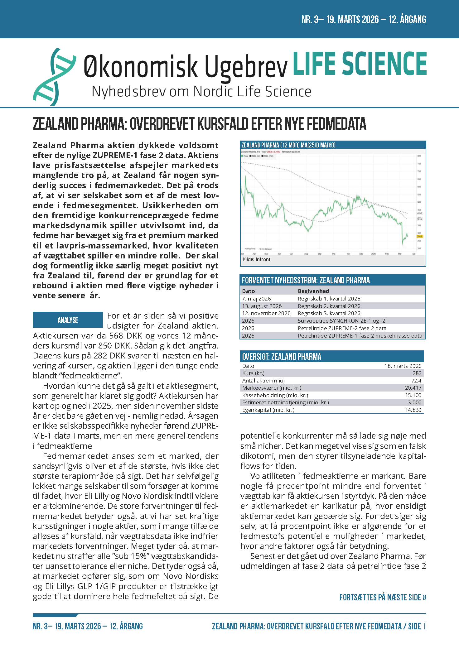 - Modelporteføljen trækkes ned af Zealand Pharma
