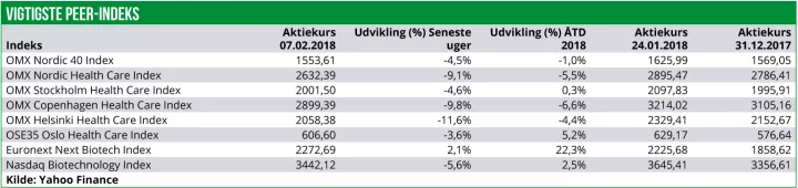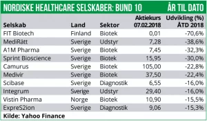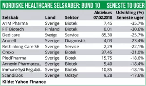 Hårdest ramt er Copenhagen indekset med et fald på 9,8% samt Helsinki indekset med et fald på 11,6%. Derimod er det svenske og norske Healthcare indeks blot faldet med hhv. 4,6% og 3,6%.