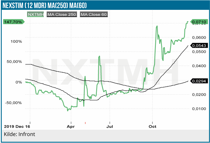 Nexstims stigning er grundet i en mere tydelig kommunikation og optimisme i selskabet samt en fin fremgang i de rapporterede regnskabstal. Vi er positive på selskabets produkter, det adresserbare marked og den operationelle eksekvering i de seneste kvartaler, men ved en markedsværdi på 33 mio. EUR fremstår synes aktien at være løbet forud for det selskabet leverer.