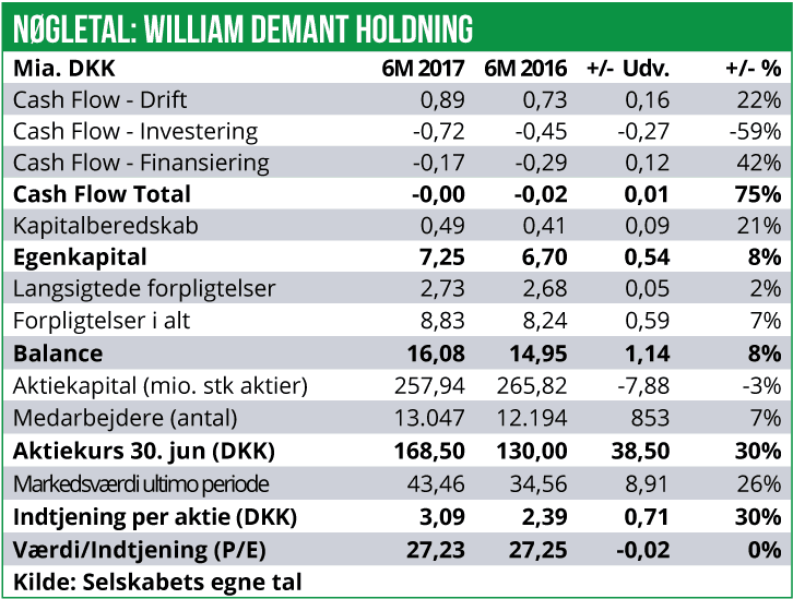 Set over hele regnskabsåret 2017 er det vores overbevisning, at WDH er undervurderet ved den aktuelle kurs, og vi betragter ugens reaktion på regnskabet som forkert. Vi forventer et godt andet halvår fra WDH, hvor et EBIT i den øverste halvdel af det udmeldte interval er sandsynlig.