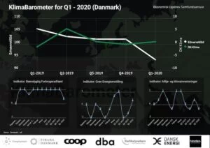 “Det Bæredygtige KonjunkturBarometer” viser den bæredygtige udvikling i Danmark. Konjunkturbarometeret viser en gang om måneden udviklingen på baggrund af tre underliggende indikatorer: 1: Bæredygtig Forbrugeradfærd, 2: Den Grønne Energiomstilling og 3: Investeringer i Klima og Miljø.